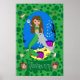 Muirenn ist ein zauberhaftes und magisches Wassertier, bekannt als Meerjungfrau. Ihr braunes Haar ist mit einer grünen Blume geschmückt und sie ist auf Kinderschuhen! Sie hat einen fließenden Gipfel von grünen Algen, schönen grünen Schwanz und Flossen, und einen grünen Perlengürtel. Muiren die Meerjungfrau streichelt ihren Delfinfreund und hält eine Blase, während sie in der Nähe des goldenen Sandbodens spielen, der mit grünen Algen-Pflanze, roten Korallen, lila Seeigeln, die Blasen blasen, und schönen Muscheln aus weiß und braun Streifen dekoriert ist.