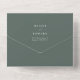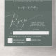 Elegante und minimale Hochzeitseinladungskarte mit einer RSVP-Karte mit einem modernen Skripttext auf einem waldgrünen Hintergrund.