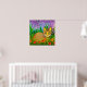 Poster in einer niedlichen Ingwerkatze mit grünen Augen, in einem Sommergarten aus roten Sternen und lila Hyazinthen
