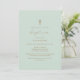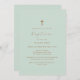 Grüne moderne Script Boho Gold Cross Taufe Einladung
