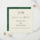 Schöne Braut & Bräutigam Monogramme am oberen Ende dieser schönen Hochzeit Speichern Sie die Date-Karte. Ecru Hintergrund mit grünem Schriftart zu koordinieren, mit dem bedrückten grünen Rücken dieser eleganten Einladung. Absolut atemberaubend.