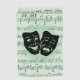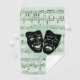 Künstlerisches Talent kommt in vielen Formen und wenn sie sich vereinen, ist es spektakulär. Die griechischen Theatermasken der Komödie und Tragödie liegen auf einem Notenblatt