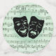 Künstlerisches Talent kommt in vielen Formen und wenn sie sich vereinen, ist es spektakulär. Die griechischen Theatermasken der Komödie und Tragödie liegen auf einem Notenblatt
