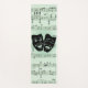 Künstlerisches Talent kommt in vielen Formen und wenn sie sich vereinen, ist es spektakulär. Die griechischen Theatermasken der Komödie und Tragödie liegen auf einem Notenblatt