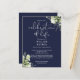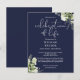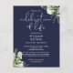 Eine elegante marineblaue, botanische personalisierte Wasserfarbe grüne Lebensfeier Erinnerung Einladung Postkarte. Entworfen von Thisisnotme
