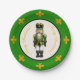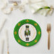 Ein lustiger grüner Nussknacker ist umgeben von einer passenden grünen Grenze mit goldenen Fleur-de-lis. Die mittlere Hintergrundfarbe kann über die Schaltfläche "Design bearbeiten" geändert werden. Der aktuelle Text "Frohe Weihnachten!" kann durch zwei verschiedene Namen oder Sätze Ihrer Wahl ersetzt werden. Die Koordination von Party-Servietten finden Sie im PS Hübsch Papers Store in der Kategorie "Party Teller und Napkins > Weihnachten".