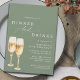 Raffinierte und lustige Einladungen zum Geburtstagsessen mit einer Aquarellbild von zwei Champagnergläsern. Weißer Schriftart auf einem gedämpften Grün. Kann in jedes Alter geändert werden, oder das Alter ganz entfernen und einfach den Nachnamen anstelle von "__th Geburtstag" schreiben.