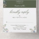 Alle in einer Hochzeitseinladung mit einer schönen Blumenkaskade und eleganter Typografie, sowie Monogramm-Initialen auf einem olivgrünem Hintergrund. Die Einladung enthält eine perforierte RSVP-Karte, die für Sie individuell adressiert oder links als leere Karte für die Handschrift der Adressdaten Ihres Gastes verwendet werden kann. Entwickelt von Thisisnotme©