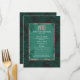 Elegant, Chic und modernes Imitat druckte Strand-Palme-Wedel-Blätter des Rosengoldgrenz- und Smaragdjadegrüns tropisches auf der schwarzen Hintergrund- und Rosengoldtypographie, wedding Empfangsmenükarten. Dieser klassische und hoch entwickelte Entwurf ist für den noblen, stilvollen und trendy Hochzeits-Empfang perfekt. Personifizieren Sie mit Ihrem eigenen Menü auf der Front, zusammen mit Ihren Namen und Daten. Fertigen Sie dann die Rückseite mit Ihrer Monogramminitiale besonders an. Aller Fotodruckentwurf.