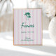 Dieses "Favors"-Poster bietet einen zauberhaften, rosa gestreiften Hintergrund, der eine Touch von Eleganz und Weiblichkeit schafft und eine lebendige und einladende Atmosphäre schafft. Auf dem Poster stehen die von der Hand gezeichnet Palmen, die die üppige Schönheit der Palmsprings und den verspielten, tropischen Flair ausstrahlen. Der handgeschriebene Script-Schriftart, der die Retro-Ästhetik umspannt, versetzt Ihre Gäste in ein modernes Paradies der Mitte des Jahrhunderts und ist somit ideal für alle, die Vintagen Charme und Stil schätzen.
