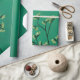 Grünes Pflanze-Umhüllungspapier mit minimalistischem Kunstwerk mit einem eleganten, blumengeschmückten Digitalbild einer blühenden Kraut-Pflanze auf dunkelgrünem Hintergrund, das an den Frühling erinnert.