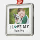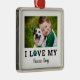 Dieses moderne Urlaubssornament für Hundefreunde enthält den Wortlaut "I LIEBE MY" in modernen und fett gedruckten, schwarzen Schriften mit einem waldgrünen Farbgebälk. Personalisieren Sie das schwarze Skript mit dem Typ des Begleiters oder dem Namen des Begleiters Fügen Sie ein beliebiges horizontales Foto hinzu. Weiße Hintergrundfarbe