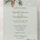 Erleben Sie den Zauber eines Winterwunderlandes mit dieser exquisiten All-in-One-Hochzeitseinladung, die sorgfältig gestaltet wurde, um die Eleganz und den Charme Ihres besonderen Tages zu verkörpern. Lass den Charme von Kiefernästen, Kiefernzapfen, heiligen und fallendem Schnee die Geschichte deiner Liebe zu einem magischen Wandteppich, der ein unauslöschliches Zeichen für die Herzen aller, die sie empfangen, verlasse. Die All-in-One Hochzeitseinladungen sind schön und praktisch, indem sie die Hochzeitseinladung mit einer leicht zu entfernenden perforierten UAWG-Postkarte kombinieren. Sie sind auch schnell und einfach für den Versand vorbereitet. Einfach auf die Einladung richten, die Rückenklappe und das Siegel mit den beiliegenden Klarsichtstickern falten. Sobald Ihre Gäste die voradressierte Einladung erhalten, reißen sie einfach die perforierte RSVP-Karte ab und lassen sie in der E-Mail ablegen.