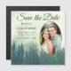 Grüne Pine Rustic Oval Foto Hochzeit speichern das Magneteinladung