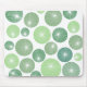 Dieses Mauspad hat ein modernes Design von Kreisen in den Farbtönen der 1950er Jahre grün mit weißen Sternexplosionen, alles auf einem weißen Feld.