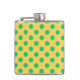 Grüne Polka-Punkte auf Gelb Flachmann