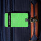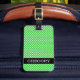 Dieses GepäckanhängerAusrüstungsbeschreibungen, die ein vieles Mustermiteinbeziehen Grün punktiert,/einkreist. Es kennzeichnet auch einen personalisierten Namen auf der Front und personalisierte Kontaktdetails über die Rückseite.