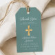 Personalisierte Grüne Religiöse Cross Boy Erste Kommunion Geschenkmarken.