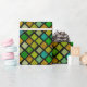 Diese Abbildung basiert auf der geometrischen Abstraktionskunst, dieses Design enthält eine Vielzahl von hellgrünen, Senfgrün und dunkelgrünen Quadraten.