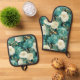Grüne Rose Ofenhandschuh & Topflappen-Set