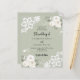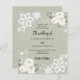 Für eine elegante und romantische Hochzeit. Weiße Blumen, Rose und weiße Spitzen. Ein wunderschöner, grüner Hintergrund. Personalisieren Sie Ihre Namen und Details und fügen Sie diese hinzu. 1 Blatt = 1 Einladung mit Druckkante bis Kante.