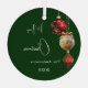 Ein grün gefärbter Farbverlauf. Rot und goldfarben dekoriert. Personalisieren Sie Ihren Namen, Jahr. Text: Frohe Weihnachten