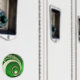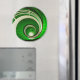 Grüne Rundtreppe in einer Schule in Zürich, Schweiz.