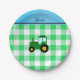 Modernes und trendiges niedliches Cartoon-grünes Traktormuster mit himmelblauen Streifen und grün-weißen PicknickSchachbrettern. Geschenke für personalisierte individuelle Name Traktor. Die besten Geschenkideen für Bauer, Jungs und Mädels.