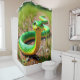Dieser Duschvorhang hat eine grüne Schlange darauf.