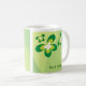Diese hübsche Tasse ist für jeden möglichen Schmetterlingsliebhaber perfekt. Sie hat einen grünen Hintergrund mit Losen grünen Schmetterlingen ganz über ihr. Jede Seite hat einen kundenspezifischen Raum für einen Namen oder eine Mitteilung.