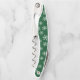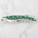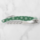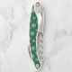 Ein Muster weißer Schneeflocken auf grünem Hintergrund.