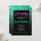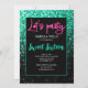 Personalisieren und anpassen Sie Imitats funkelnd Sweet 16 Einladung. 16 . Geburtstag Kollektion von PLdesign: Schöne, gürmisch glamouröse, lebendige grün schwarz ombre glänzende Glitzer Glitzern Einladung. Foto von Glitzern Glitzer und coole helle Neonnachahmung Let's Party. Kein chaotischer Glitzer zur Touch!