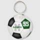 Diese Mannschaft färbt Fußball-Schlüsselanhänger für Jungen oder Mädchen mit dem realistischen Bild eines klassischen Fußball-Balls mit grünen, schwarzen und weißen Panels - passen Sie den Namen, die Monogrammnummer und die Trikotnummer des Spielers an - von katz_d_zynes