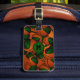 Dieses Basketball-Gepäckanhänger weist ein zufälliges Muster von Basketballbällen unterschiedlicher Größe auf, die sich über dem Bild eines abstrakt übergroßen Basketballs befinden - zwei Basketballfelder auf jedem der gemusterten Basketball wurden neu gefärbt - ein grünes und ein schwarzes - personalisieren mit Monogramm auf der Vorderseite, Adressinformationen auf der Rückseite - von katz_d_zynes