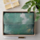 Abstrakte flüssige Acrylmalerei in den Grüntönen, im Weiß und im Gold.