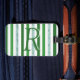 Fügen Sie Ihrer Reise einen personalisierten Stil mit einem individuellen Gepäckanhänger hinzu. Green Silver Glitzer Streifen Mit Monogramm Custom Luggage Tag. Gute Geschenkidee für den Reisenden. Personalisieren Sie Ihre eigene Monogramm Initial.
