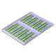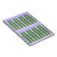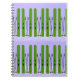 Grüne Skier auf lila Notebook Notizblock