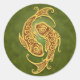 Dieses stilisierte Symbol für das Tierkreiszeichen von Pisces ist mit komplizierten Linien und Punktmustern dekoriert. Das symmetrische Design besteht aus zwei ausgeklügelten Fischen, die in einem Yin-Yang-Muster zusammenpassen. Dieser atemberaubende, gelbe und grüne Aufkleber ist eine schöne und stilvolle Art, Ihr Astrologisches Zeichen zu zeigen.