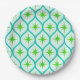 Mit diesen zeitgenössischen Tellern aus der Mitte des Jahrhunderts, die auf Retro-aquamarine ovale Formen mit kalkgrünen atomaren Sternexplosionen geschichtet sind, werden Sie stilvoll. Ideal für Vintag inspiriert Party, Cocktail-Ansammlungen oder Retro-Geburtstage, bringen diese Teller kühnen Flair aus den 50er Jahren und klassisches atomares Age-Design auf Ihren Tisch.