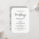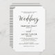 Klassische Hochzeitseinladung mit einem Streifen Muster und einfacher Typografie in dunkelgrün und weiß.