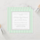 Eleganz und Einfachheit beschreiben diese quadratische Einladung, die für Probenabendessen, Hochzeiten oder Babyduschen perfekt ist. Quadrieren Sie 5,25" x 5,25" die Einladung, die einen weichen Grünstreifenhintergrund mit dem EinfügungsTextbereich kennzeichnet, der in silbrig-grauem gerahmt ist. Fertigen Sie mit Ihrem eigenen Text besonders an. Mit weißen Umschlägen oder beschließt unsere kommt das Zusammenbringen Umschläge, um Ihr Einladungspaket abzuschließen.