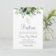 Taufe Einladung Schöne grüne Watercolor Rahmen auf weißem Hintergrund machen diese Einladung atemberaubend! Fügen Sie Ihre Ereignisdetails mithilfe des Vorlagenformulars hinzu. Zusätzliche Texte können bei Bedarf mit der Funktion Anpassen auf der Rückseite hinzugefügt werden.