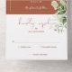 Alles in einer Hochzeitseinladung mit botanisch grünen rustikalen Blätter, die über einen goldenen Bogen fallen und elegante Typografie auf Terrakotta-Hintergrund enthalten. Die Einladung enthält eine perforierte RSVP-Karte, die für Sie individuell adressiert oder links als leere Karte für die Handschrift der Adressdaten Ihres Gastes verwendet werden kann. Entwickelt von Thisisnotme©