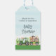 Grüne Traktorboys Babyduschenschilder für Landtiere, die von einem Traktor gezogen werden. Fügen Sie den Namen der Mutter hinzu, die sein soll. Siehe Matching-Set.