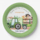 Grüne Traktorboys Babyduschmaschine Teller für Landtiere, die von einem Traktor gezogen werden. Fügen Sie Ihre Party-Details hinzu. Siehe Matching-Set.