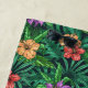 Ein schönes Badetuch zum Baden mit grünen tropischen Blätter und farbenfrohen Blume aus dem Hibiskus.