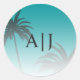 Grüne Tropical Palm Tree Beach Monogram Wedding Runder Aufkleber