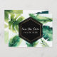 Grün tropische Blätter Weiß Elegant Save the Date Postcard. Anpassen mit jedem Text.