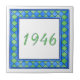 Ein Hand gezeichneter blauer und grüner checkered Rahmen um eine grüne Hausnummer auf einem weißen Hintergrund mit dunkelblauen Konturen.