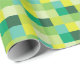 Dieses Packpapier kennzeichnet Quadrate in den verschiedenen grünen Abstufungen und Gelb in einem pixelated Muster.